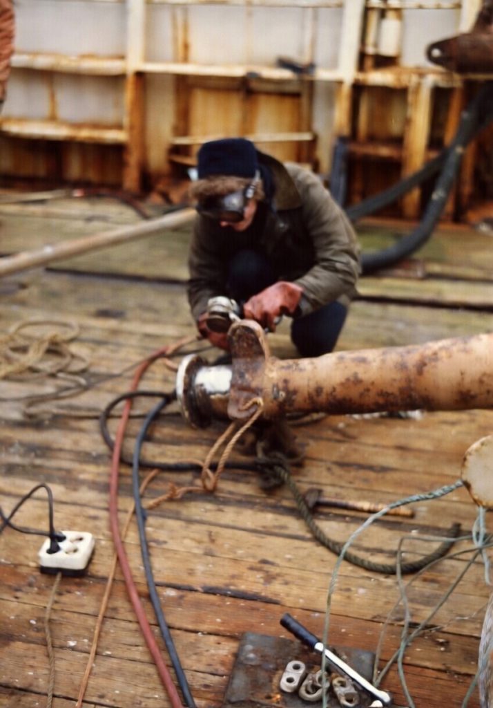 Photo taken by an aerial photography company in February 1988. I purchased a set of four photos at a later date. That’s me in green on the back deck, along with James Day, Steve Conway, and a chap from Leicestershire whose name I have forgot!The Ross Revenge with the aerial system first erected in 1988Mike Dixon/Davies/Coconut with the mail in December 1987Christmas on Caroline 1987. Chris Kennedy, John Bibby, Steve Conway & Mike Dixon/DaviesChristmas on Caroline 1987. Rowena Wilde, Steve Masters and John BibbyRadio Caroline’s very own ‘Wilde Child’ RowenaThe Bellatrix pulling alongside, bringing suppliesFred Bolland and Noel welding the base for the Strumech Versa Tower to the deckRowena Wilde climbing to the top of the Versa Tower to attach a pair of her knickers. Yes, Radio Caroline had a ‘topping out’ ceremony to celebrate the erection, and completion, of the first proper aerial system after the big tower came down a few months before.Two men on a mast…One of the infamous ‘bucket’ aerial systems!The Olau Britannia, The Poolster and the aerial photography airplane. Quite a interesting day for us on the Ross Revenge!The legendary tender operator Dave ‘The Fish’ FisherRob Harrison and Steve Satan (Andy Bradgate)Nick Jackson and Ian MilesShaun Tilley, Ron van der Plas, Peter MooreLeaving the Ross Revenge on the Dreamboat Annie tenderNigel Harris, Dave Richards and Colin PetersArie Swets/Harry AndersonStation Manager Peter MooreNeil GatesNewly made cross arms for the aerial towerFred Bolland working on the new aerial towerRowena Wilde doing some grindingRadio 819 deejays Walter Simons and Colin PetersFred Bolland working on the base for the new lattice tower. French TV journalist observingGetting ready to start building the lattice towerFirst sections of the lattice tower are erectedFirmly bolted to a steel plate welded to the top of the gun mounting!DJs, aerial tower erectors, and even a holidaymaker, and that’s true!Andy Bradgate having a picnicArie Swets working on the mastNeil Gates. I was always climbing the tower to take photos!Two tenders arrive at the same time, much like London busesRon van der PlasOne very drunk Arie Swets!That tower is looking impressiveOops, over we go!It could get very rough out on the North Sea!The Dutch studio after a bad storm!Peter Chicago, hero to many, something else to many others…A calm North Sea eveningMike Watts and Mike Dixon/DaviesNick Jackson, Mike Dixon/Davies, Ian Miles – photo by B.DomIan Mac looking out for a supply tender!Beautiful night on the North SeaAerial sectionsIan Mac and the rainbow!Steve Masters & Mike Davies in their typical fashion gearPoolster circling the Ross RevengeMr Cool at the controls; Ron van der PlasFred van AmstelDutch studio mixer & cart machinesMr Smooth; Dave AsherWorld Mission Radio/SW studioDutch, Irish & Brits all happily doing radio on the North SeaSteve Conway, Dave Asher, Mirjam & WalterNorth Sea gossip sessionYou need big tractor tyres!Dutch DJs: Walter, Mirjam, Erik & FredNoel hauling the ropes!Poolster departs